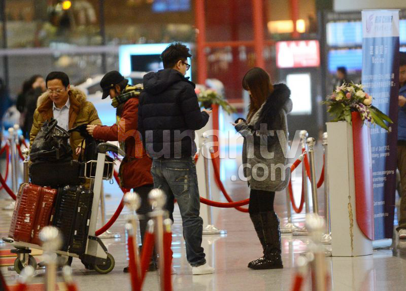 李小璐贾乃亮机场牵手甜蜜玩自拍 一路亲昵耳语
