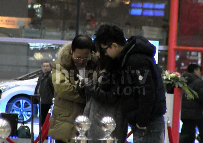 李小璐贾乃亮机场牵手甜蜜玩自拍 一路亲昵耳语