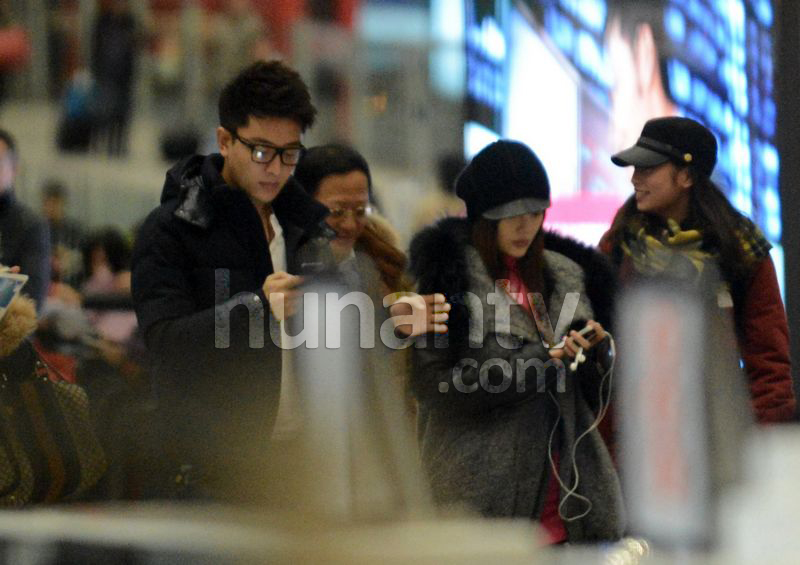 李小璐贾乃亮机场牵手甜蜜玩自拍 一路亲昵耳语