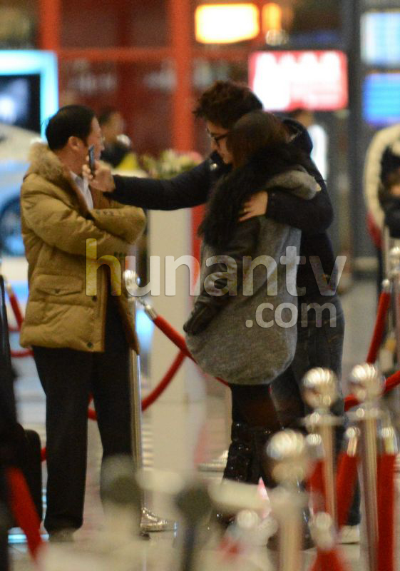 李小璐贾乃亮机场牵手甜蜜玩自拍 一路亲昵耳语