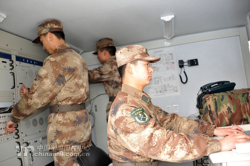 组图:北京军区通信团紧急拉练 架设卫星天线