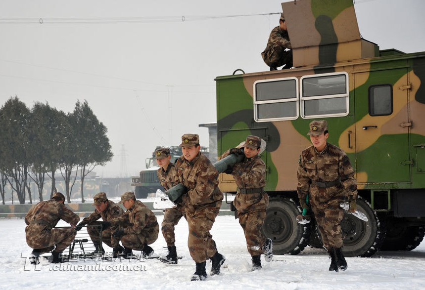 组图:北京军区通信团紧急拉练 架设卫星天线
