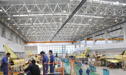 成飞总装厂繁忙的生产现场。