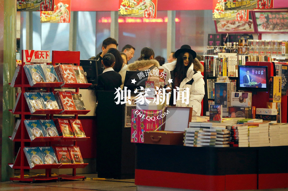 范冰冰寒风吃冰棍模样可人 超大羽绒服难掩星范