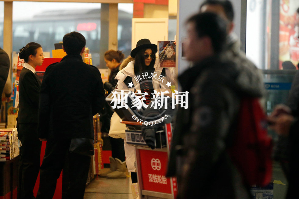 范冰冰寒风吃冰棍模样可人 超大羽绒服难掩星范