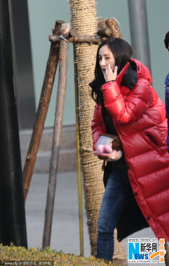 近日,杨幂身穿红色羽绒服在上海市区某天桥附近收工直奔保姆车,见郭敬明在时便下车与其拥抱“久久不愿分开”。