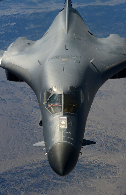 实拍美军战略轰炸机空中加油 飞行员高举国旗