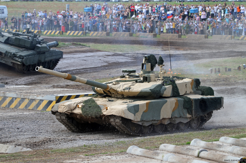 T-90SM配备“卡利纳”火控系统,以全数字化弹道计算机为核心,与炮长用“松树-U”热成像仪、车长用“鹰眼”全向瞄准仪、主炮双轴陀螺稳定装置、炮塔顶部横风传感器与车速、耳轴倾斜角、弹药温度等周边传感器相结合,是一款高度自动化的火控系统。