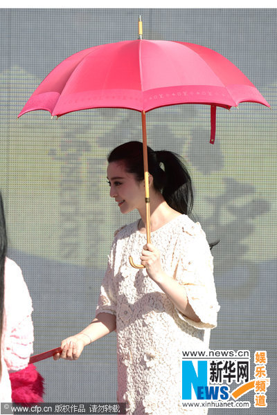 范冰冰捞金亲自撑红伞遮阳 娇俏抬脚秀玉腿(图)