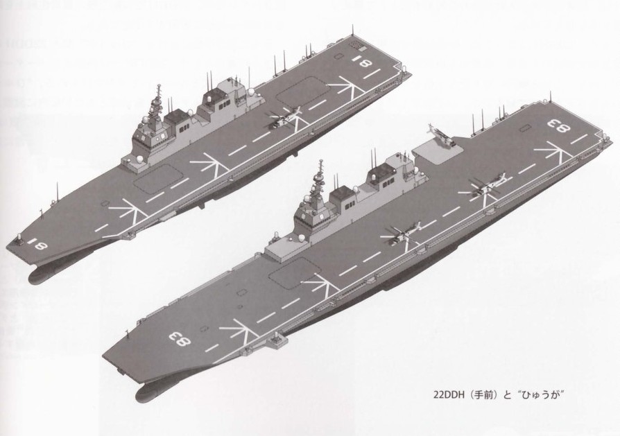 22DDH的CG图,左边是日本目前最大的“日向级“直升机航母