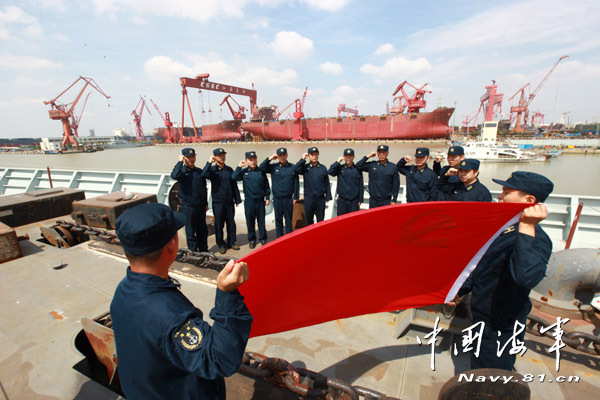 在新型战舰监造现场宣誓向按期交付冲刺