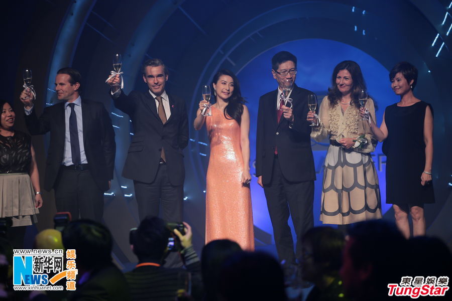 郭晶晶斜肩闪裙亮相小腹微凸 与霍启刚造人不设防