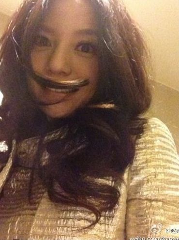 背景:前几日就有媒体报道,赵薇称自己当年能演小燕子是误打误撞,而走红要感谢自己的一双大眼睛。8日晚,赵薇在微博中晒出的自拍照,一双玲珑有神的大眼睛果然十分抢镜。照片中赵薇十分调皮地摆出搞怪表情,大眼睛盯着镜头,嘟着嘴,而飘散的卷发正好遮在嘴巴上,好像胡子一般,十分俏皮有趣。