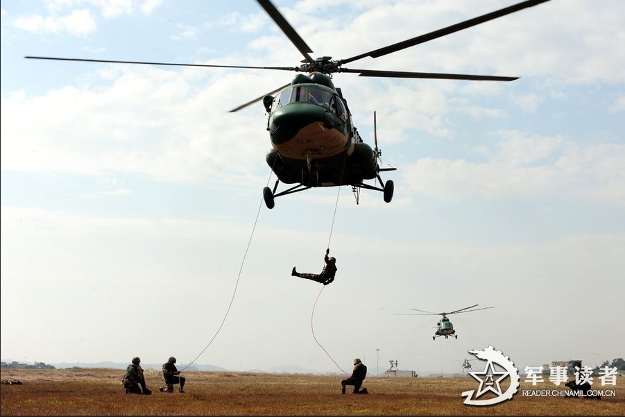高清:南京军区精锐分队训练直升机敌后机降作战