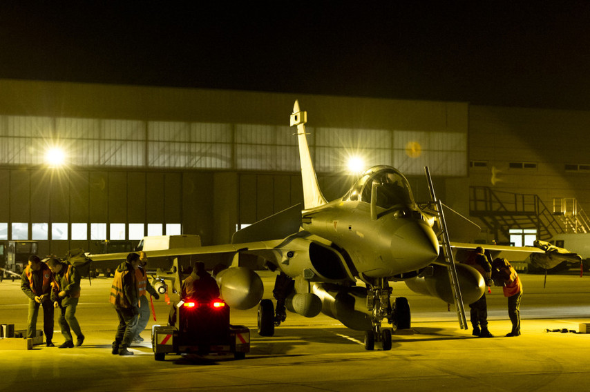 由法国国防部1月13日提供的照片显示,1月12日,一架法军“阵风”歼击机在法国圣迪济耶军事基地做执行任务前准备。新华社/法国国防部