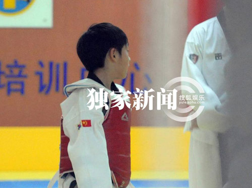 吴秀波儿子苦练跆拳道 妻子陪伴气氛融洽(组图)