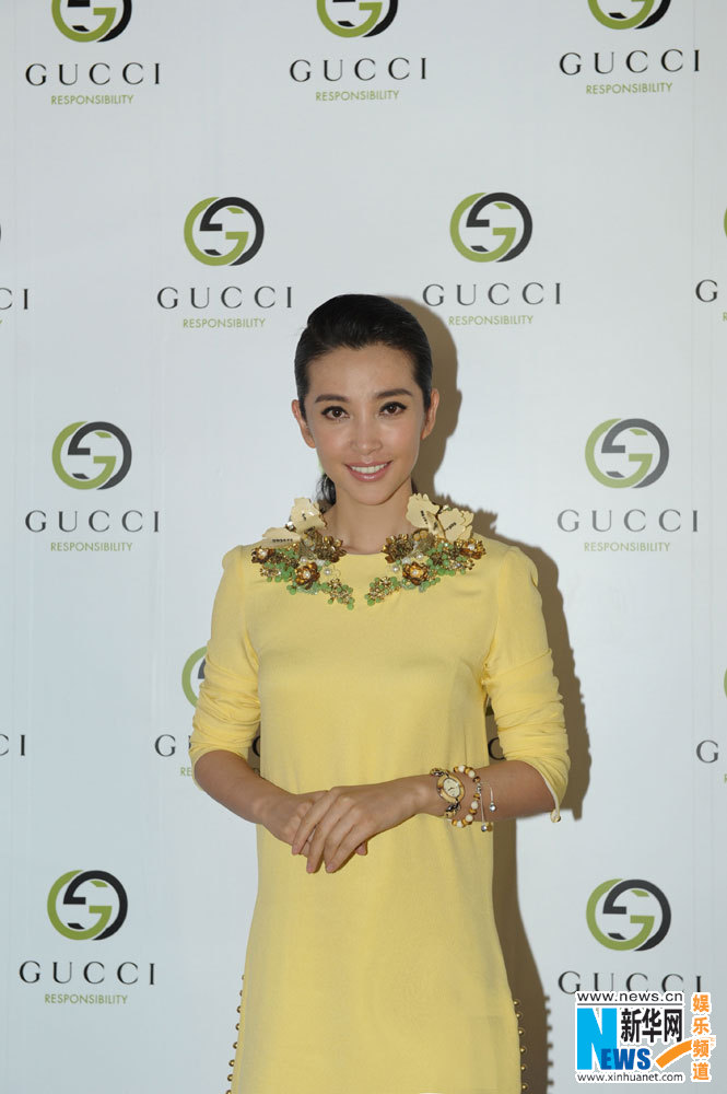 图:李冰冰代言顶级奢侈品牌 黄裙优雅与高层热聊