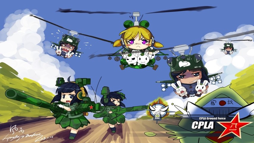 近日,中国的漫画创作者绘制了解放军多款主战武器形象。有武直10、米-171、东风21D、航母辽宁舰等。
