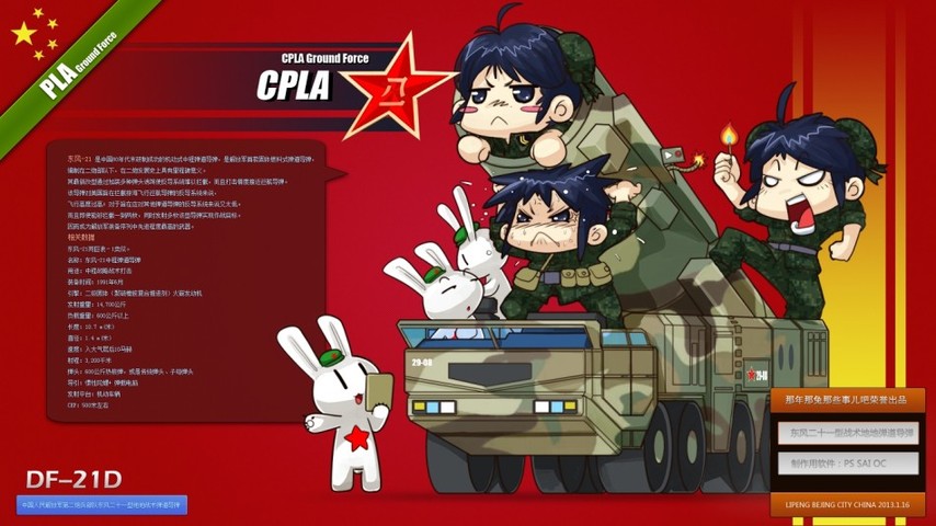 近日,中国的漫画创作者绘制了解放军多款主战武器形象。有武直10、米-171、东风21D、航母辽宁舰等。