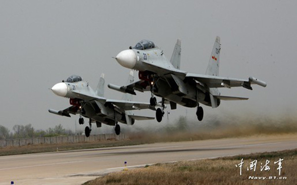 随后,数架某新型战机相继呼啸升空,飞向茫茫空域,展开对抗空战、仪表等课目训练,打响了“海空雄鹰团”新年度飞行训练“第一枪”。