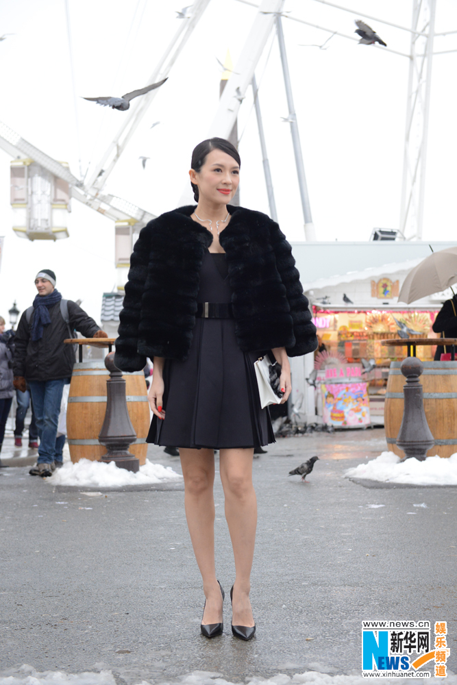章子怡披皮草秀红唇现身巴黎 获LV高层撑伞拍照