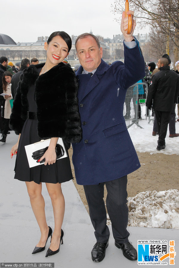 章子怡披皮草秀红唇现身巴黎 获LV高层撑伞拍照