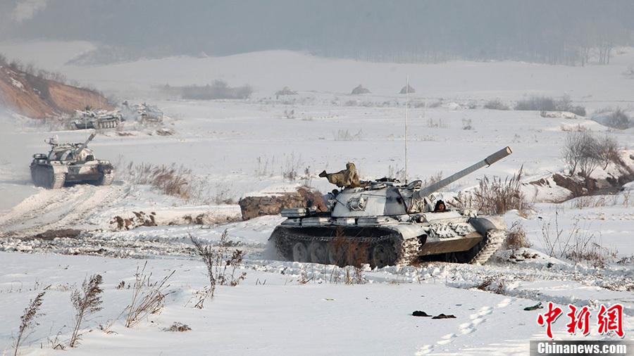 沈阳军区老59式坦克涂上雪地白色专用迷彩