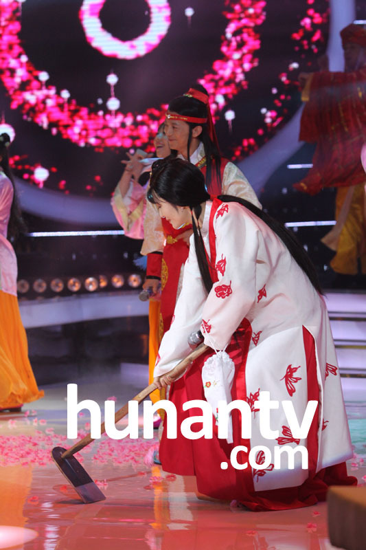 谢娜扮林黛玉与何炅版贾宝玉搞笑葬花 颠覆想象