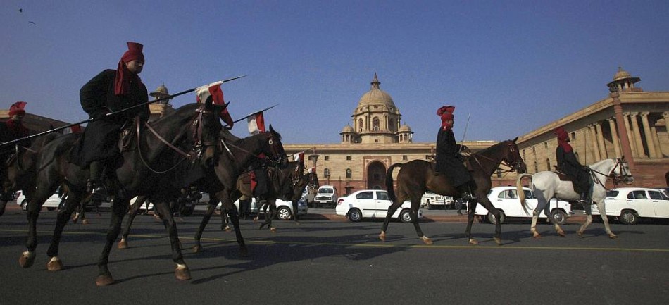 高清:印度阅兵式彩排色彩鲜艳犹如马戏团亮相