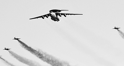 图为空警2000(最上方飞机)在国庆60周年阅兵典礼上飞行。中国电子科技集团公司供图