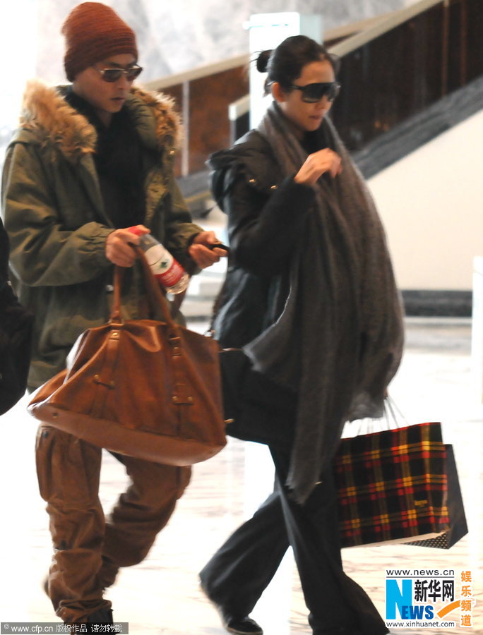 1月28日,蔡少芬与老公张晋以及女儿“小汤圆”张楚儿一家三口现身浦东国际机场。