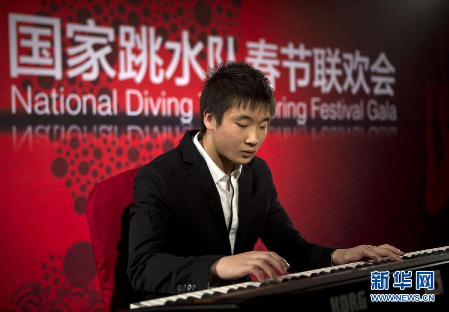 2月3日,中国跳水队队员曹缘在晚会上表演电子琴独奏。当日,有着“梦之队”之称的中国跳水队在北京举行春节联欢会。 新华社记者费茂华摄