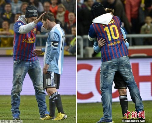 中新网2月7日电 北京时间今天凌晨,阿根廷国家队做客斯德哥尔摩与瑞典进行一场热身赛,最终阿根廷以3-2战胜对手。比赛终场前出现小插曲,有一位身穿巴塞罗那10号球衣的球迷冲入场内拥抱梅西并且对跳蚤摸头爱抚。
