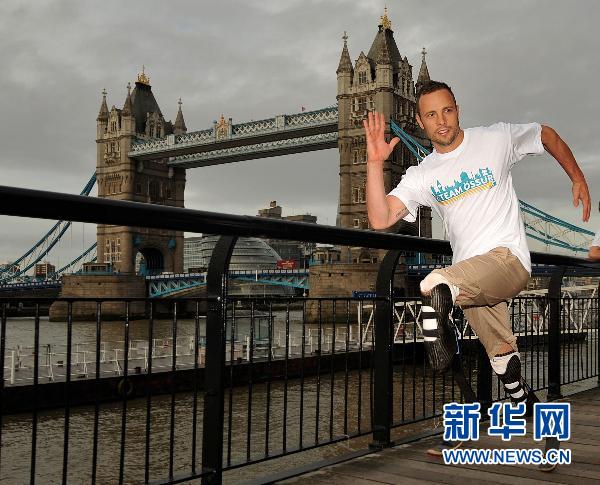 图为皮斯托瑞斯在伦敦塔桥前为即将到来的国际残奥日做宣传(2011年9月7日摄)。新华社发