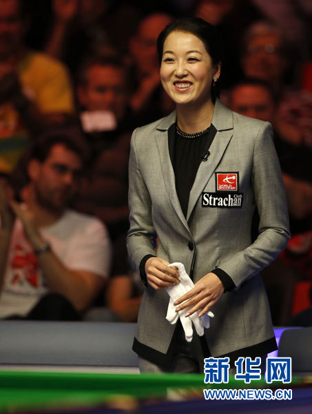 2月17日,中国裁判诸瑛在比赛前。当日,在英国威尔士南部纽波特市纽波特中心举行的2013年威尔士斯诺克公开赛决赛中,苏格兰选手斯蒂芬·马奎尔迎战英格兰选手斯图亚特·宾汉姆。本场比赛由中国女裁判诸瑛执裁,这也是来自亚洲的裁判第一次执法国际斯诺克排名赛决赛。新华社记者王丽莉摄