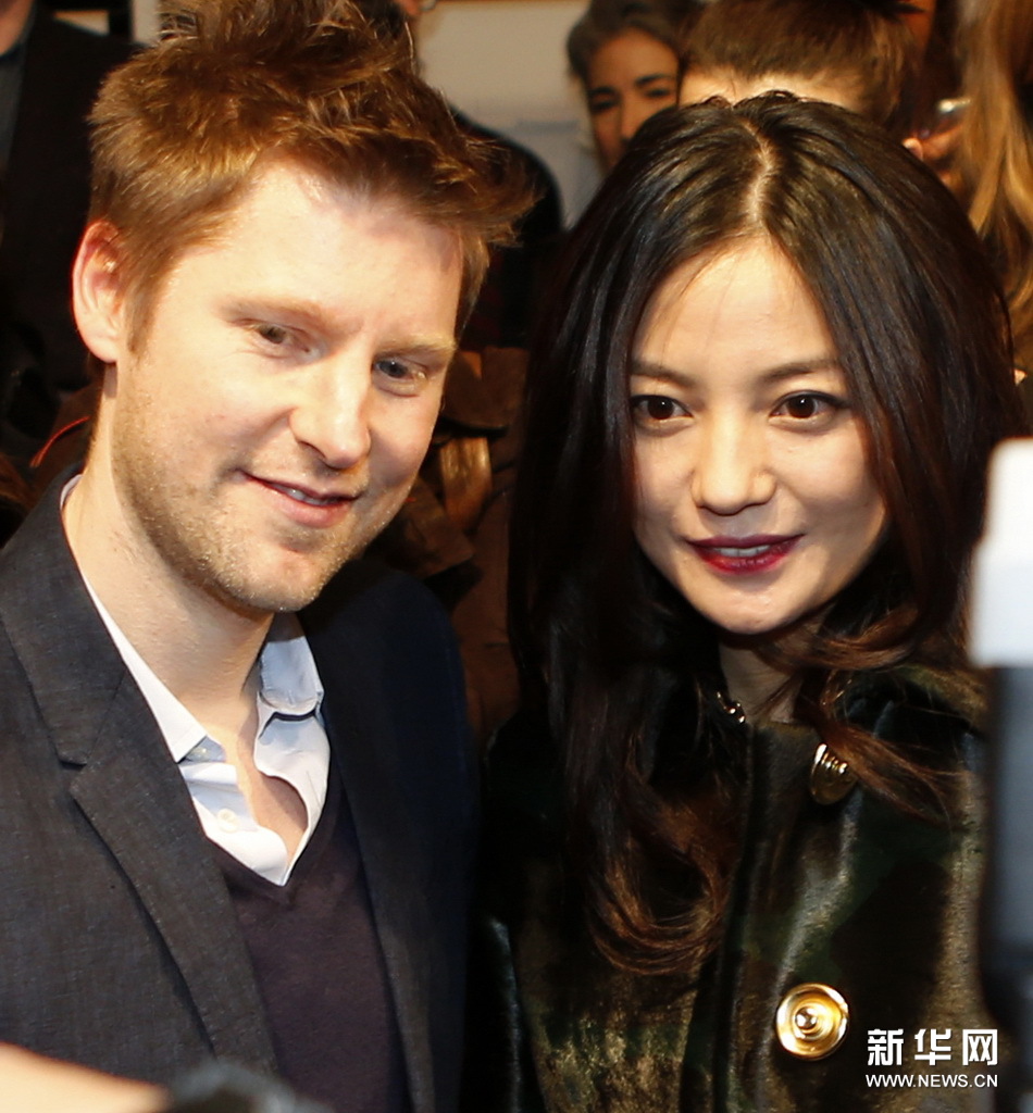 2月18日,出席伦敦时装周的中国演员赵薇(右)与Burberry Prorsum创意总监、英国著名设计师克里斯托弗·贝利合影。新华社记者王丽莉摄
