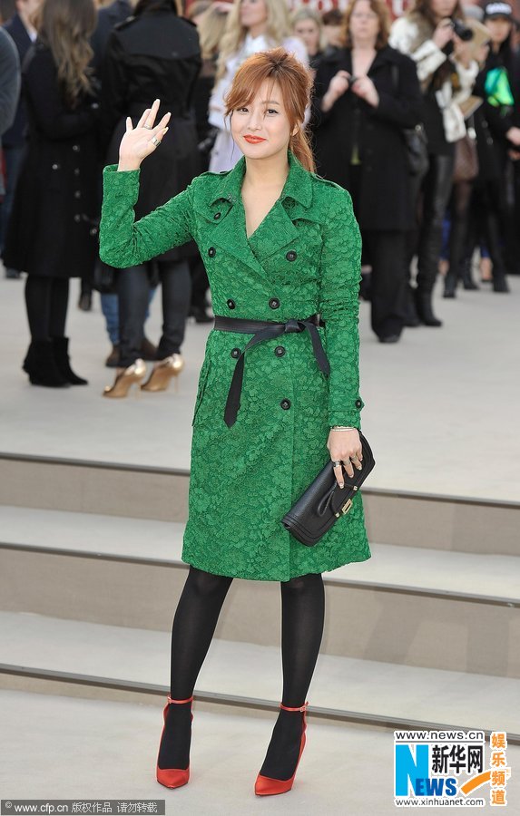 赵薇红绿配现身伦敦时装周 与金喜善同席争艳(图)