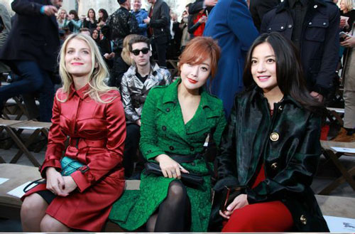 赵薇红绿配现身伦敦时装周 与金喜善同席争艳(图)