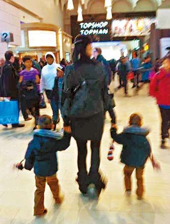 多伦多天气寒冷,Isabella三母子的装束十分臃肿,一对儿子穿上一模一样的衣服,加上一头与李泽楷一样的平头look发型,不知是否Isabella刻意为爱儿炮制父子头。Isabella独自拖拉着两爱儿,旁边不见有亲友协助,相信她对照顾儿子已驾轻就熟,摆明一副全职妈妈。