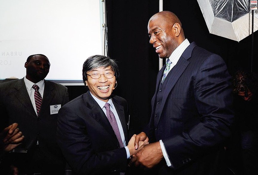 2010年10月,黄馨祥购买了“魔术师”约翰逊手中湖人4.5%的股份,这部分股份是约翰逊在1994年花1000万美元购买的,至于16年后黄馨祥花费了多少钱,美国媒体并没有报道,只是援引约翰逊的话称:“这是一个甜蜜的商业决定。”据美国ESPN报道,黄馨祥入股湖人非常低调,并未接受采访也没有主动告知任何媒体。