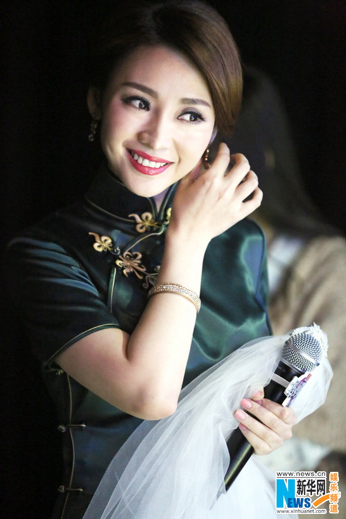 柳岩墨绿旗袍惊喜登台当伴娘 动情献唱《甜蜜蜜》