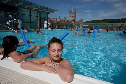 伦敦的高温天气使得许多民众前往郊区休闲,同时还有一些人干脆直接跳入游泳池,尽情享受水中的清凉。