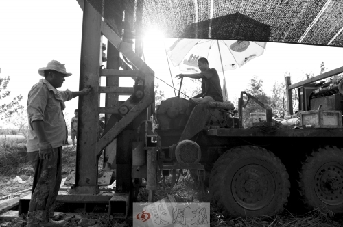 潢川县付店镇的村民正在昼夜不停地打井为水稻灌溉。 首席记者 杜小伟 摄影