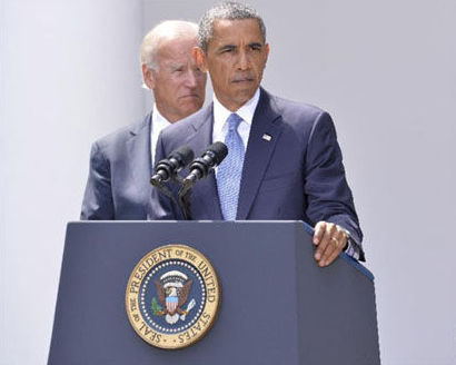 8月31日,在美国首都华盛顿白宫玫瑰园,美国总统奥巴马(前)就叙利亚局势发表讲话。奥巴马31日在白宫发表讲话说,他将就对叙利亚采取军事行动寻求国会授权。美国国会众议院将在9月9日之后开始就此展开讨论。(新华社记者张军摄)