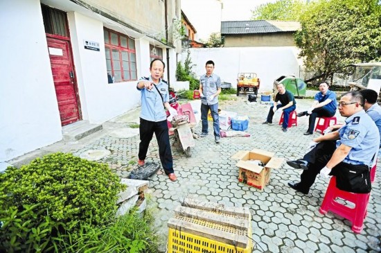 鄂州葛店派出所院内,警方正对现场留下的摩托车进行查验,并组织技术人员对死者进行尸检,对其死因作进一步的认定。