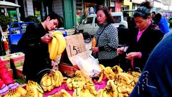 记者发现虽然香蕉价格跌至2元,比市场上大多数水果都便宜,但仍少人问津。红利市场上的水果商贩蔡师傅表示,一天也就能卖几箱。“主要原因还是现在水果种类多了,许多北方的水果都大量上市,市民的选择多了。”(记者 张倩倩)